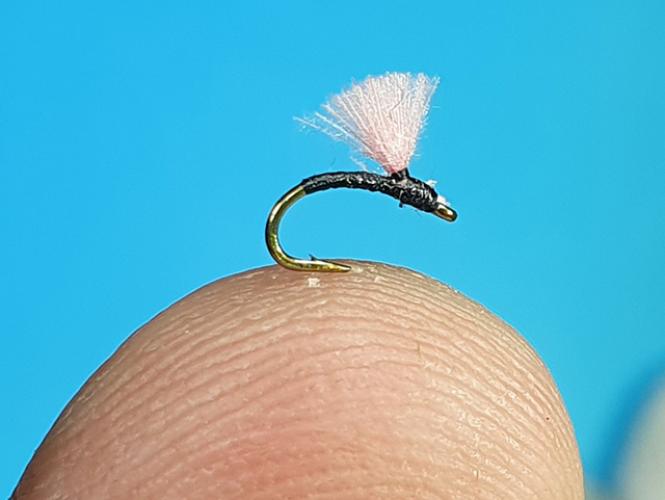 Skorajda NIČ materiala na trnku - vendar je to poleti dovolj da ne zmoti velike postrvi, ki si muho ogleduje dooolgo časa preden jo končno vzame!