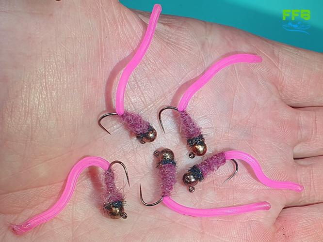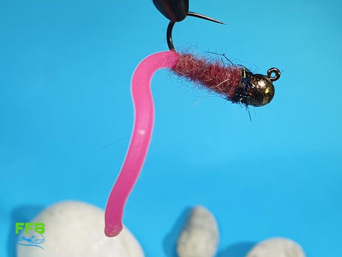Tole ni imitacija ličinke (nimfe), temveč nečesa mnogo bolj mamljivega za ribo - deževnika! Trpežna ter realistična vezava, izbrana dlaka na telesu je barve surovega mesa!