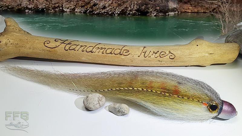 Velika potezanka OBTEŽENA z 15g svinčeno glavo je namenjena muharjenju sulca! Vezava iz lahkih fiber je zagotovilo, da bo imela potezanka v vodi zelo "živ videz" ter akcijo! Vezana je na TUBO s priloženim vrhunski trnek za lov tarpona - Tiemco TMC600SP 2/0, ki je zelo oster, zapeto ribo pa drži z veliko zanesljivostjo. Trnek lahko poljubno zamenjate za drugačnega (sistem vezave na cevko to omogoča). Potezanko smo razvili na Savi Bohinjki, uspešno pa lovi tudi na Savi, Savinji, Sori, Ljubljanici..
