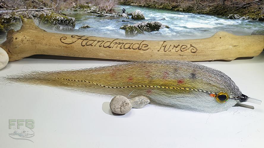 Večja potezanka za lov sulca je vezana na tubo; Trnek, ki ga priporočamo - TMC600SP št. 2/0 JE VKLJUČEN, seveda pa ga lahko nadomestite tudi s kakšnim svojim. Morda celo trojčkom, če boste muharili ščuke. 3D oči le še pripomorejo k realističnemu videzu! Prednost vezave potezanke na tubo je v tem, da lahko trnk, ko se le ta skrha ter izgubi ostrino zamenjate z novim - ostrejšim. Druga, manj poznana prednost pa je v tem, da se med borbo z zapeto ribo potezanka sname s trnka ter se odmakne navzgor po najlonu - kar sulcu oteži možnost odpetja s trnka! Vsaka vaba, ki jo riba drži v gobcu namreč povzroča upor vode, kar zna velika riba izkoristiti za pobeg iz trnka!