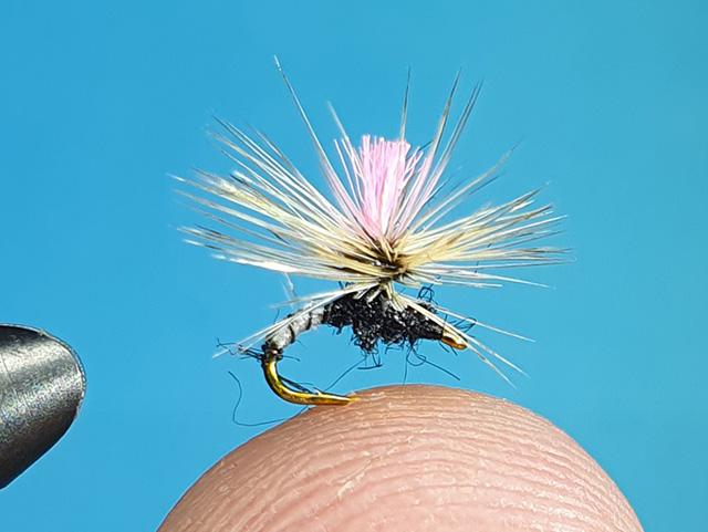 Manjši padalec tipa klinkhamer vezan z dobro vidnim ter ribi privlačnim rožnatim perescem!