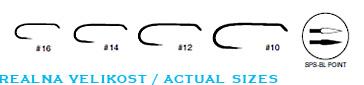 Eden najbolje prodajanih modelov za vezavo nimf - ravno prava dolžina hrbtišča odgovarja neštetim variantam umetnih muh - nimf! Močnejša žica nekoliko doda sami teži nimfe ter zagotavlja zanesljivost pri utrujanju večjih rib. Lahka montaža tungsten glave. Model z oznako SP ima konico brušeno na način Spear point - zelo ostra!