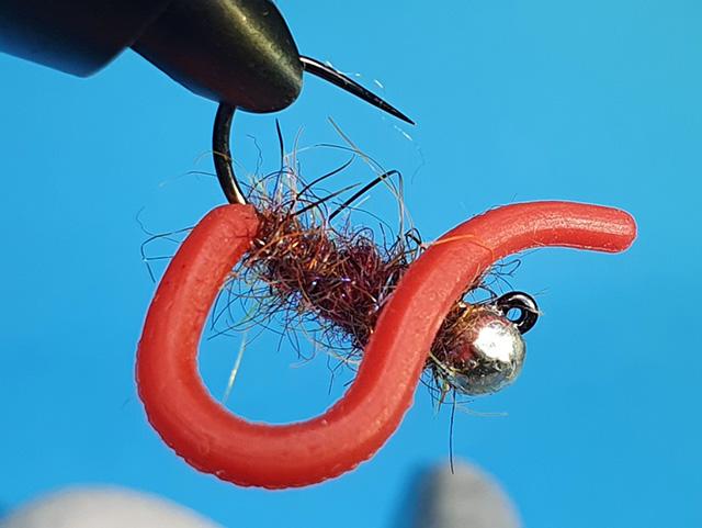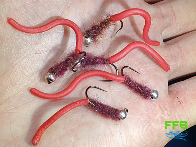 Tole ni imitacija ličinke (nimfe), temveč nečesa mnogo bolj mamljivega za ribo - deževnika! Trpežna ter realistična vezava, izbrana dlaka na telesu je barve surovega mesa!
