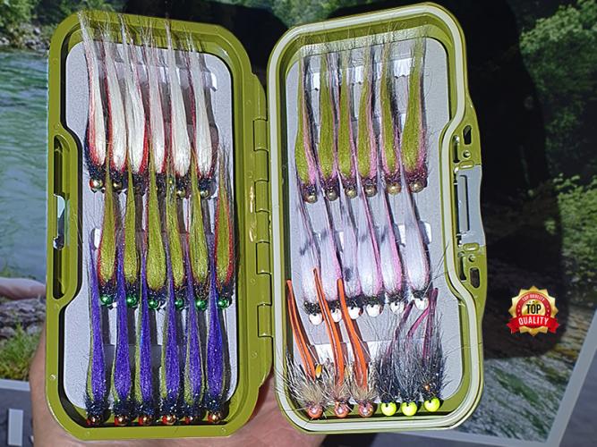 Popularne barve naše najboljše potezanke - Leech Pijavke tokrat zbrane v lovnem kompletu ter pregledni škatli za shranjevanje! Potezanke so vezane iz kvalitetnih materialov na jig trnke japonskega proizvajalca Tiemco ter zdržijo dosti prijemov večjih postrvi! VSE barve so preizkušene po postrvjih vodah Slovenije, zahodne ter srednje Evrope, pa tudi Skandinavije. Zelo lovne so tudi na akumulacijskih jezerih slovenskih rek. Skratka - nakup brez tveganja!