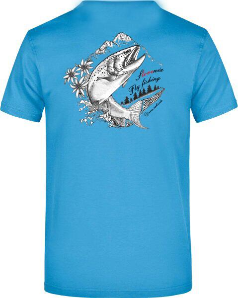 Lepa in kvalitetna majica za ribiče muharje - Unikatna grafika oblikovalke Eve Saksida. Tematika majice združuje alpsko pokrajino s Triglavom, potočno postrvjo ter planikami - najlepše kar Slovenija lahko ponudi ribičem muharjem.