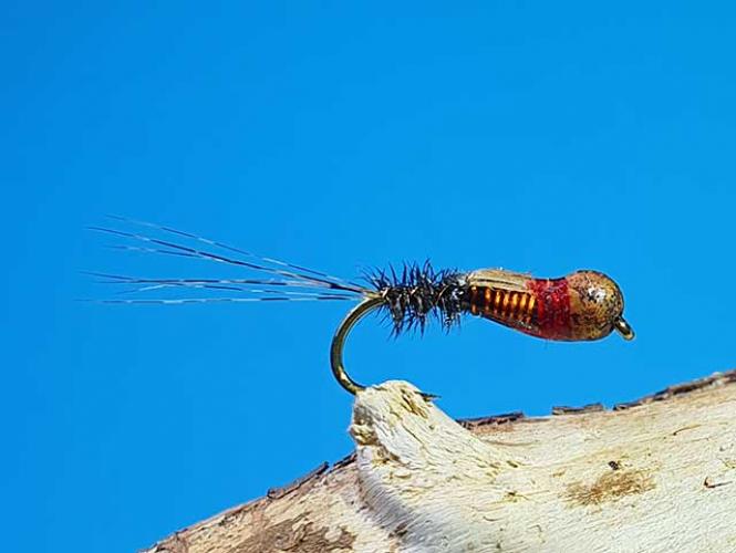 Klasični model nimfe za lov postrvi! Učinkovita kombinacija rjavega bakra ter zelenkaste pavove fibre bo premamila večjo postrv tako v reki Savi kakor Rižani - kratko rečeno, univerzalna nimfa!