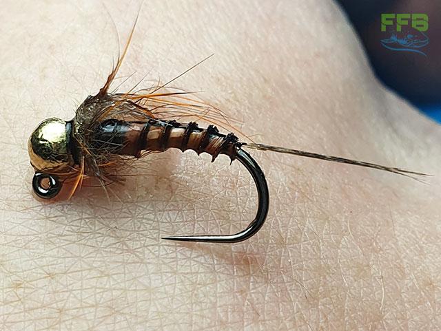 Elegantna nimfa v rjavkastih - univerzalnih odtenkih. Drobno oprsje z bodičastimi vlakni deluje v vodi zelo realistično!
