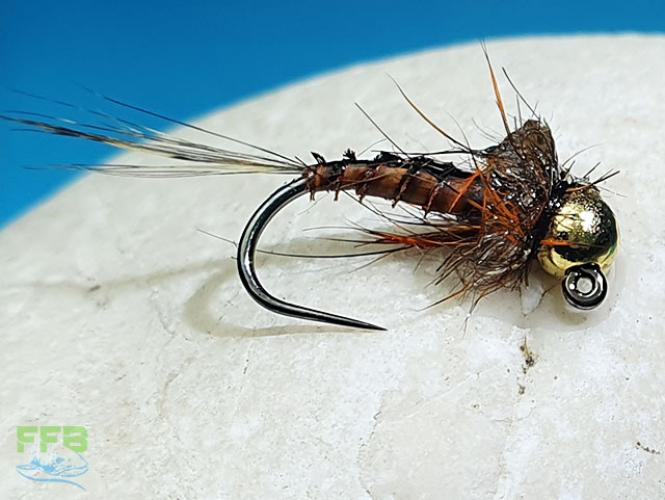 Elegantna nimfa v rjavkastih - univerzalnih odtenkih. Drobno oprsje z bodičastimi vlakni deluje v vodi zelo realistično!