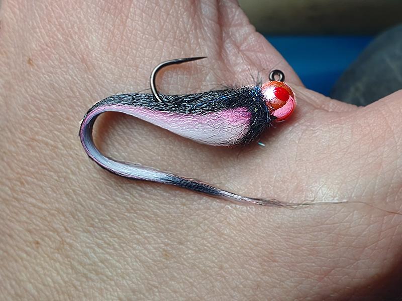 Šarenka ima iz nam ne-znanega razloga rada rožnate odtenke na vabah - nežno rožnata, skoraj srebrna glava je odlična izbira!