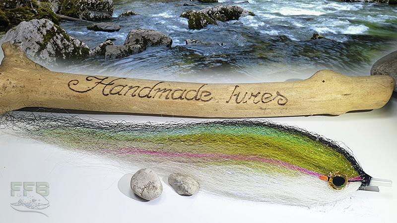 Večja potezanka za lov sulca je vezana na tubo; Trnek, ki ga priporočamo - TMC600SP št. 2/0 JE VKLJUČEN, seveda pa ga lahko nadomestite tudi s kakšnim svojim. Morda celo trojčkom, če boste muharili ščuke. 3D oči le še pripomorejo k realističnemu videzu! Prednost vezave potezanke na tubo je v tem, da lahko trnk, ko se le ta skrha ter izgubi ostrino zamenjate z novim - ostrejšim. Druga, manj poznana prednost pa je v tem, da se med borbo z zapeto ribo potezanka sname s trnka ter se odmakne navzgor po najlonu - kar sulcu oteži možnost odpetja s trnka! Vsaka vaba, ki jo riba drži v gobcu namreč povzroča upor vode, kar zna velika riba izkoristiti za pobeg iz trnka!