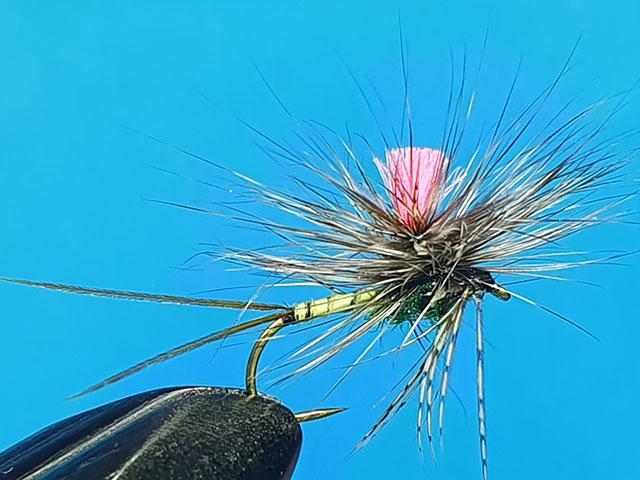 Dobro vidna suha muha tipa padalec. Vezava iz atraktivnega Whiting peresa, ki poskrbi za odlično plovnost ter dobro vidnost za ribo ter muharja!