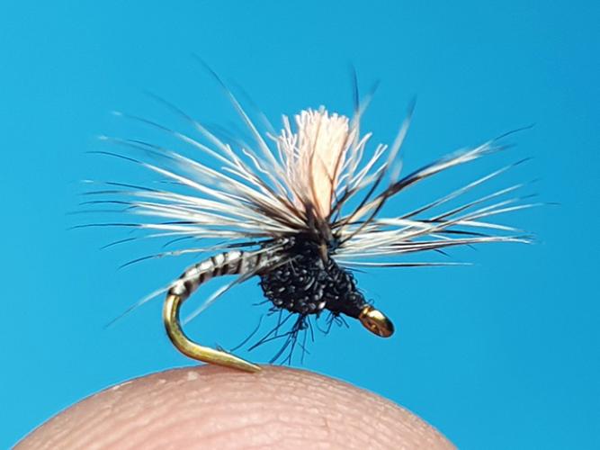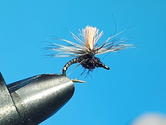 Manjši padalec tipa klinkhamer vezan z dobro vidnim ter ribi privlačnim rožnatim perescem!