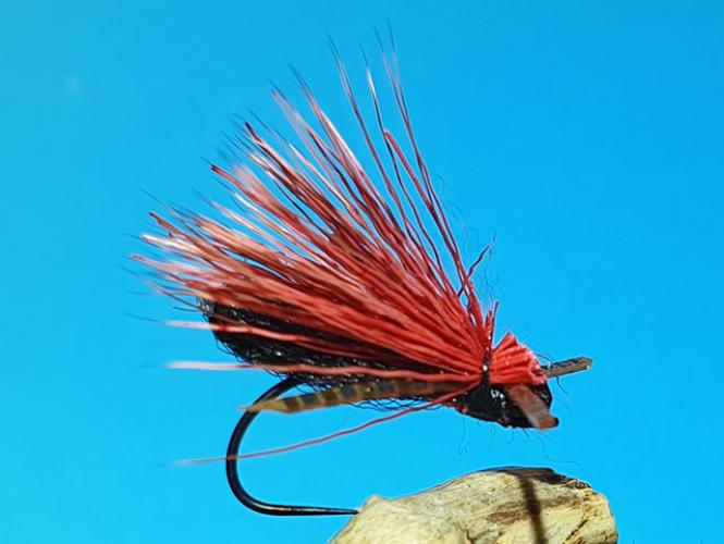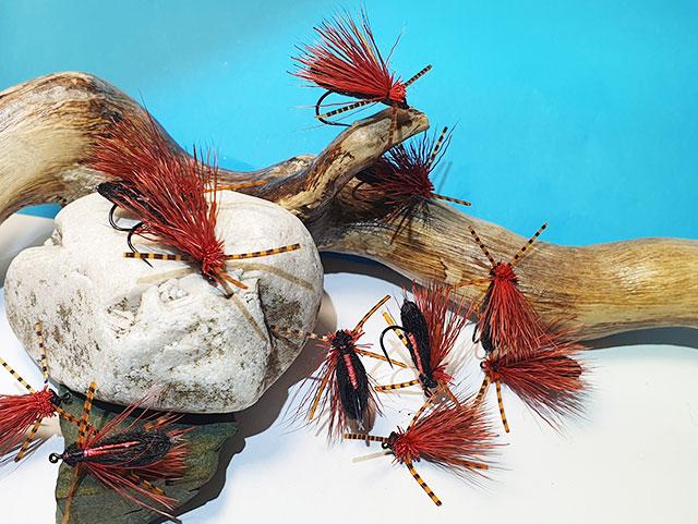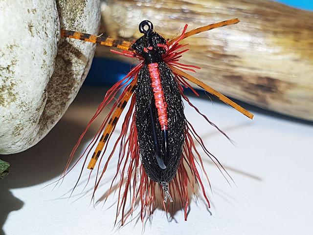Večja suha muha vezana iz srnine dlake po vzorcu hrošča ali kobilice. Dodane gumijaste nožice za boljšo akcijo na vodni gladini. Odlična izbira za lov postrvi v manjših potokih ali večjih rekah blizu brega. Zračno telesce je vezano iz fibre, ki v sebi zadržuje zrak, kar pripomore k boljši plovnosti.