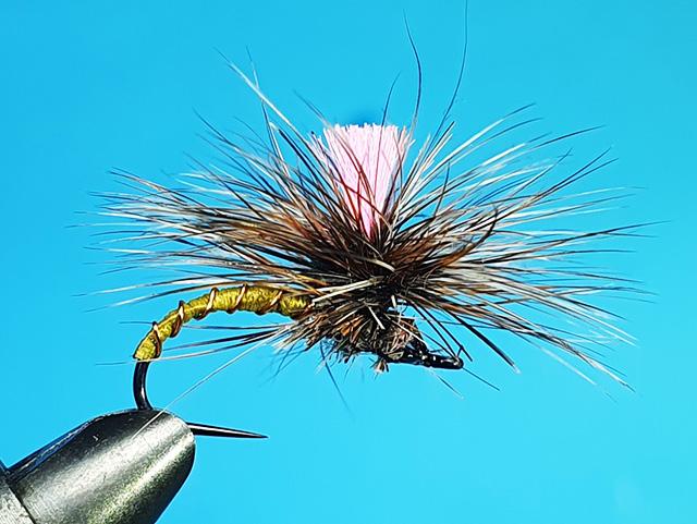 Dobro vidna suha muha za lov postrvi. Debelejše rebrasto telesce ter močna mika zagotavljata odlično plovnost, ter naraven videz izlegajoče se žuželke!