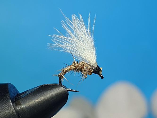 Majhna suha muha puhovka - dobro plovna, z dodatkom CDC fibre pa tudi dobro vidna! CDC muhe vam načeloma ni potrebno mazati, lahko pa uporabite poseben prah za sušenje - Dry Shake Shimazaki.