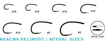 Moderno oblikovan trnek postavlja nov standard v svojem razredu - univerzalnih brezzalustnikov za širok spekter vezalnih potreb. Dobro uravnotežen, široko odprt, ravno uho - idealna izbira za vezavo tekmovalnih nimf, modelov za CZ nymph tehniko lova.. Super ostra konica brušena po sistemu "spear-point" je seveda brez zalusti. Manjše številke so primerne tudi za vezavo suhih muh!